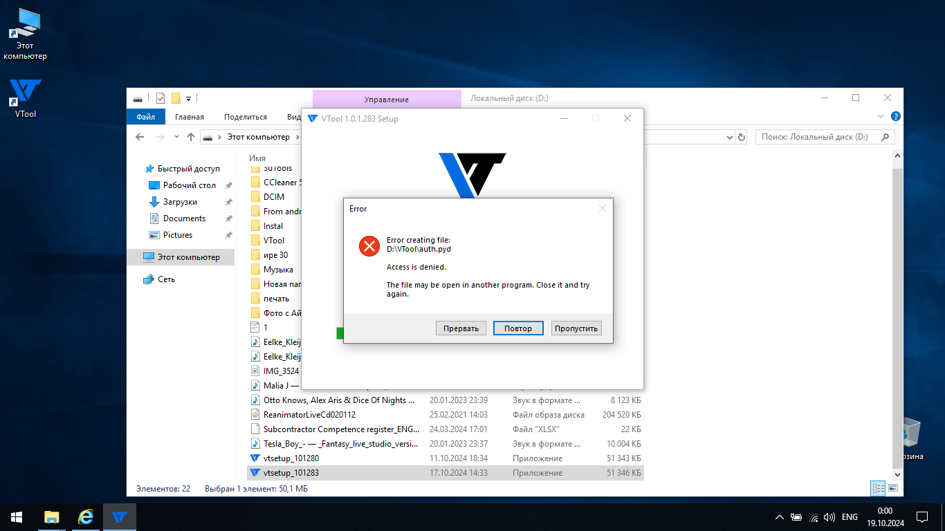 Отформатирован диск,переустановил Винду и все равно новая версия vtool не ставится,все та же ошибка,что на скрине выше...