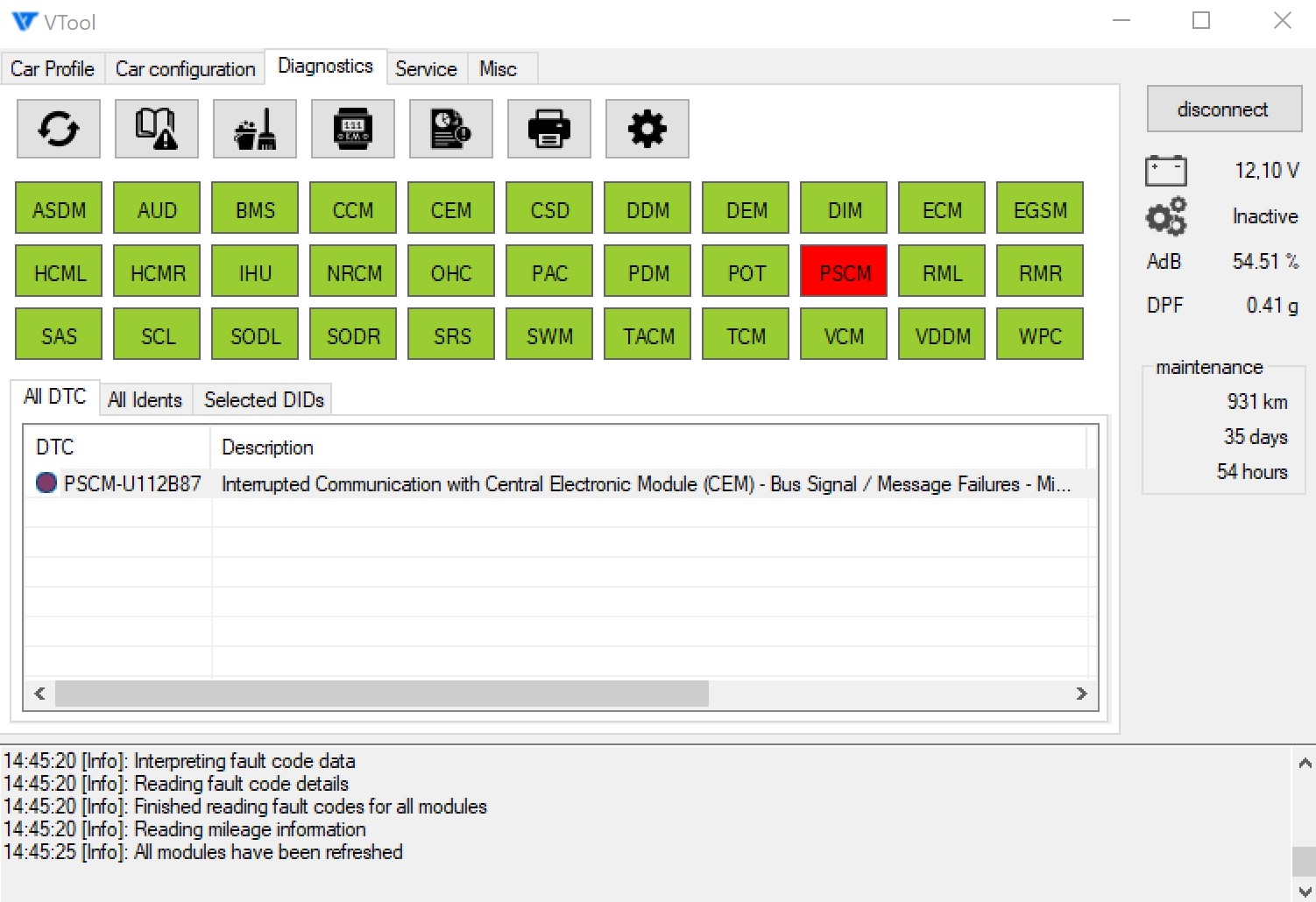 1) отправить проблемному модулю Reset из раздела Service и затем стереть ошибки еще раз