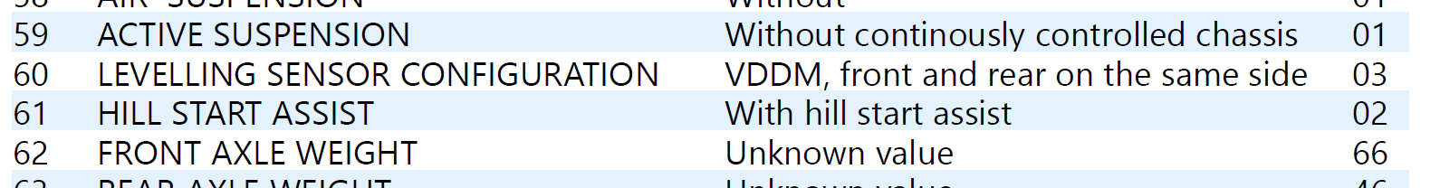 Конфигурация датчиков в параметре 60 LEVELLING SENSOR CONFIGURATION